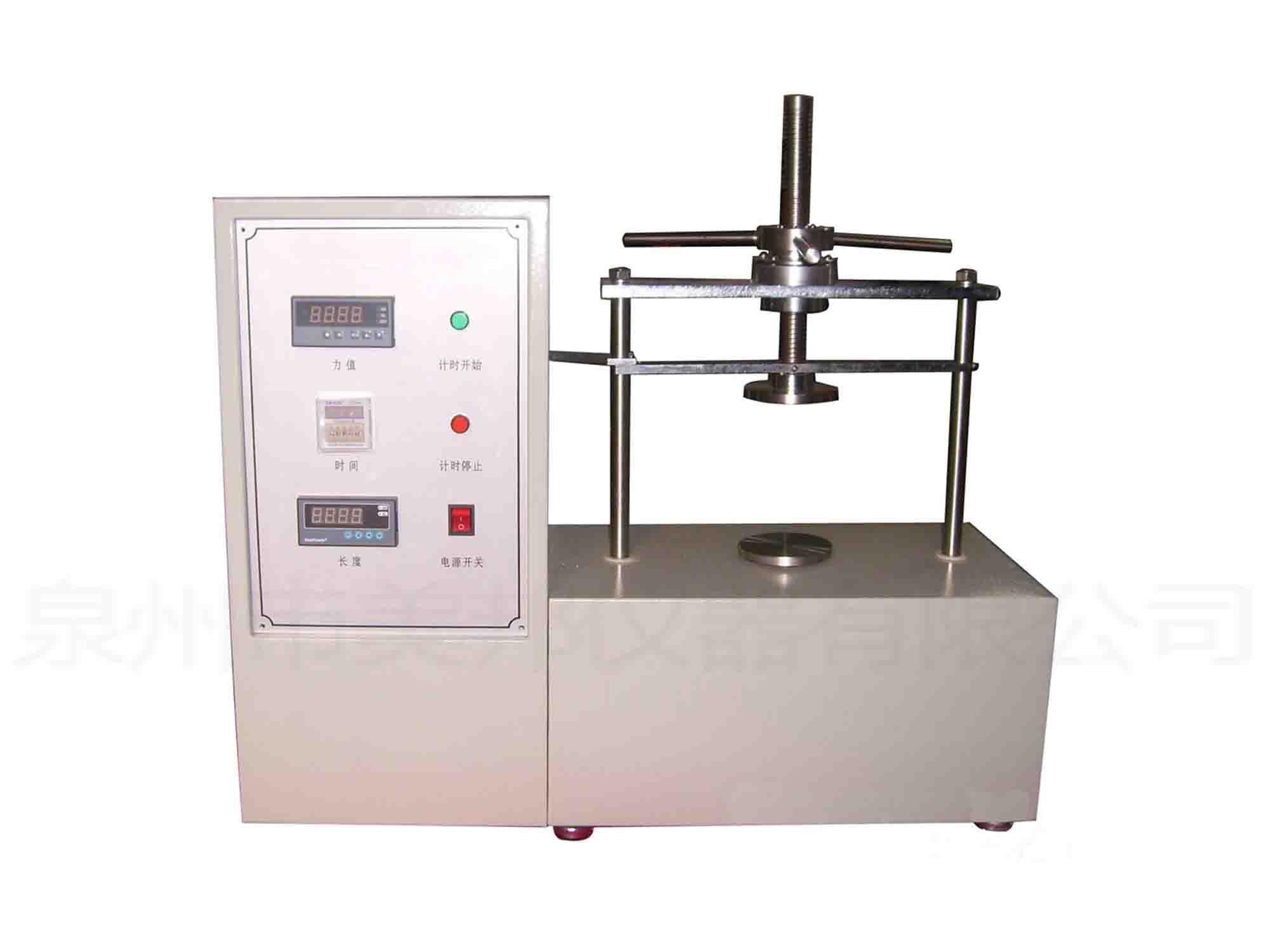 將安全帽側(cè)放在兩平板之間,帽沿在外并盡可能靠近平板,測試機(jī)通過平板向安全帽加壓,在平板的垂直方向施加30N的力,保持30s,記錄此時(shí)平板的間距為Y1,然后以100N/min的速度加載直至430N,保持30s,記錄此時(shí)平板的間距為Y2,以100N/min的速度將載荷降至25N,然后立即以100N/min的速度將載荷增加到30N,并保持30s,記錄此時(shí)平板的間距為Y3,測量值應(yīng)準(zhǔn)確到1mm,并記錄可能出現(xiàn)的破壞現(xiàn)象,計(jì)算Y2與Y1的差值為大幅度變形,計(jì)算Y3與Y1的差值為殘余變形。