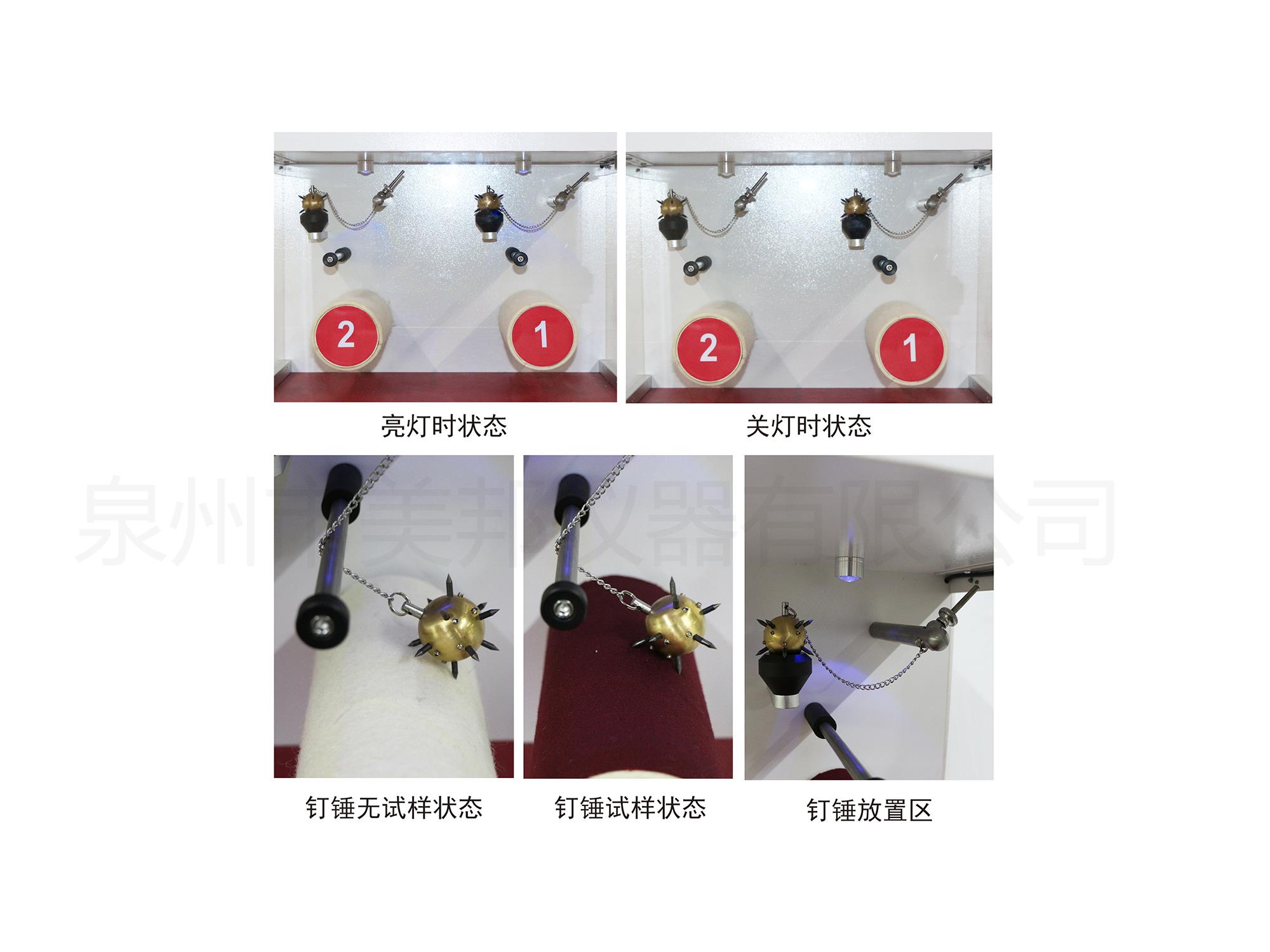 5、鋼球萬向式設(shè)計,使得釘錘轉(zhuǎn)動靈活無阻力,確保測試的隨機性。